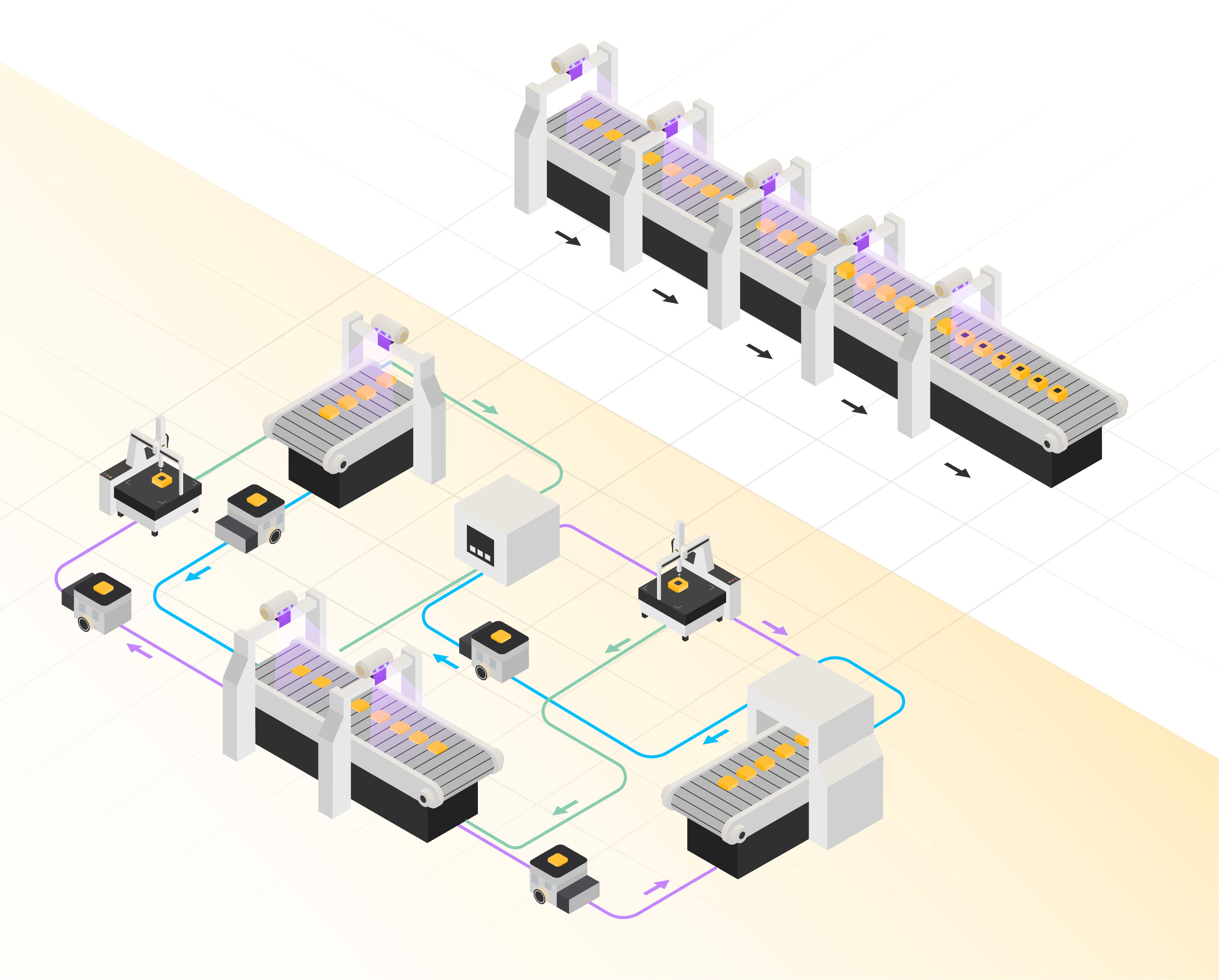 AGVs over conveyor belts
